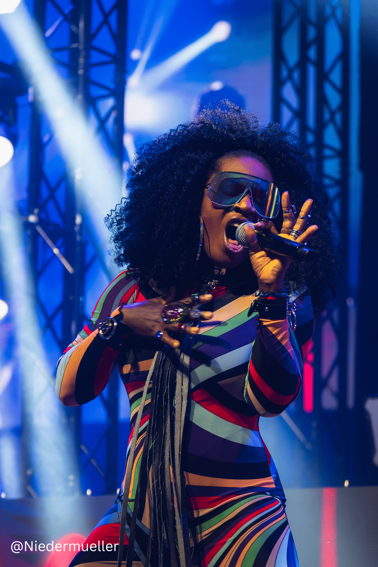 Sängerin Jackie Sangster an der Spitze von Culture Beat. Bei Auftritten wird sie vom griechischen MC 4T unterstützt.